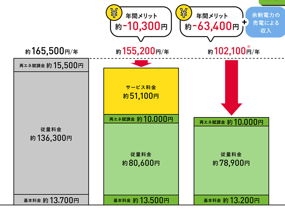10年後には、所有権もお客様に移転しますので、なんと年間6万円以上、電気代がお得になるサービスです。パワコンと呼ばれるものが、15年に一度交換するもので、価格は10万円~15万円ほどいたしますが、2年くらいで元がとれてしまいますね(๑•̀ㅂ•́)و グッ!