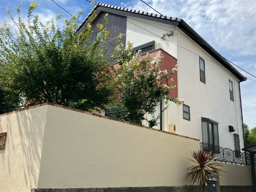 津市の築20年の住宅にて、シリコン塗料を使用した外壁塗装を行いました。外壁全体を明るいホワイトリリーで仕上げ、縦ラインにパイオニアを配色することで立体感とモダンな雰囲気を演出。さらにベランダ部分にはシナモンを取り入れ、アクセント効果で個性的かつ上品なデザインとなりました。池田建設様の建物の魅力を最大限に活かしながら、耐候性に優れた塗料で美観と保護の両立を実現しています。長く安心して暮らしていただける仕上がりとなり、お客様にも大変ご満足いただけました。