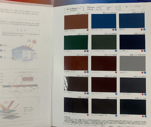 色決めをする時にまず最初に手渡されるのが塗料のカタログだと思います。そこから気に入った色がない場合は、日塗工(日本塗料工業会)という600色くらいある見本帳だと思います