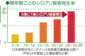 シロアリ消毒は一度の施工で長期安心ではありません。外壁塗装と同じで事前対応が大事なのです。2013年~2014年に全国の木造住宅を対