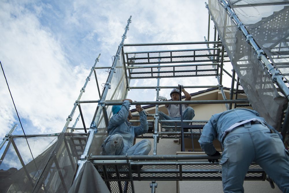 1つのお家を2人で足場組立するより、同じ日に3人で2件足場を組み立てすることにより1人の人件費が浮いたりいたします。