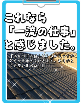 それから数十年と過ぎ、私たちが元請けとして、お客様と直接繋がりを持つようになってからは、「塗れない屋根」「塗る事に適していない屋根」が出てきたときは、迷わずに塗装ではない、屋根カバー工法や屋根葺き替え工事、時には屋根の修理までと行ってきました。